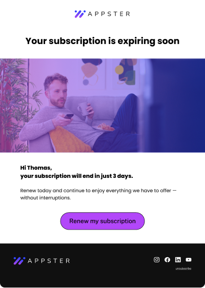 Increase subscription renewals with a multichannel reminder sequence before and after expiry.